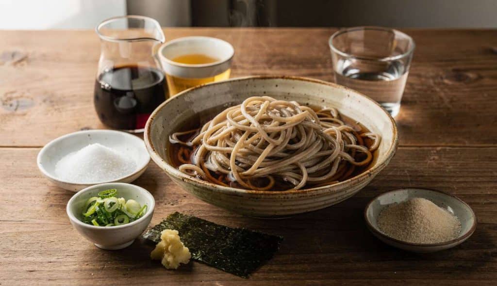 le mentsuyu est une sauce japonaise traditionnelle incontournable, souvent utilisée pour agrémenter les nouilles comme les sobas, udons, ou somens. Cette préparation, à la fois savoureuse et polyvalente, peut transformer vos plats de nouilles en délices dignes des meilleures tables nippones. La sauce repose sur l’équilibre des saveurs entre le salé de la sauce soja, le sucré du mirin, et le goût umami du dashi.